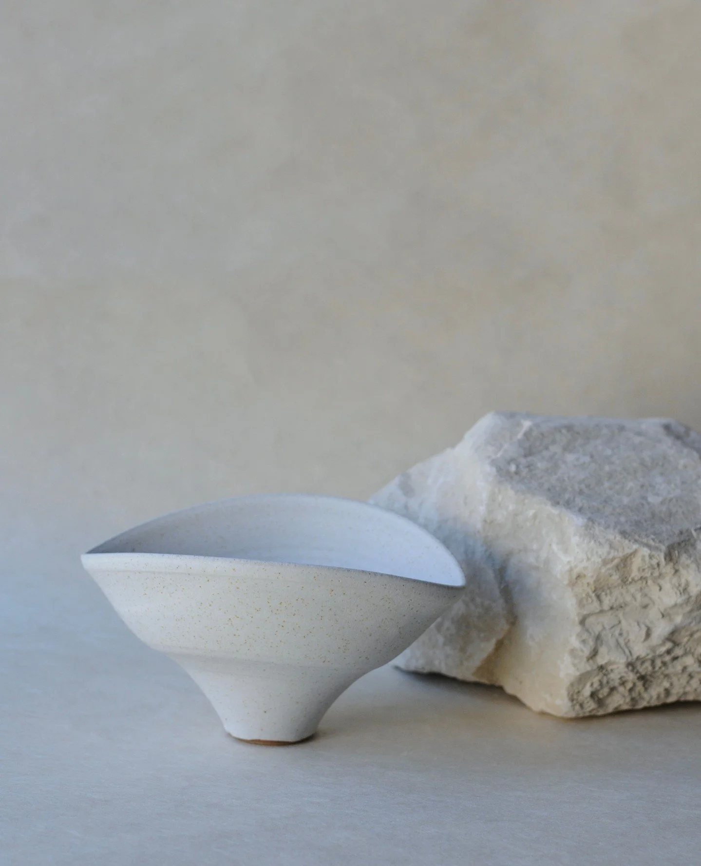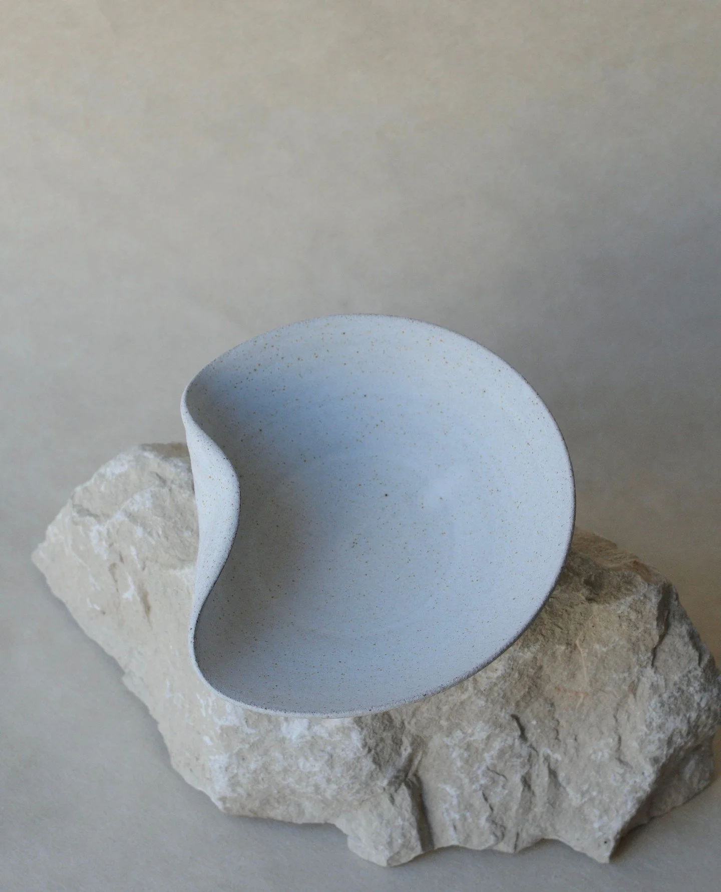 Finding balance on the edge. This speckled white stoneware feels like a quiet morning in the studio. There’s a hidden stren